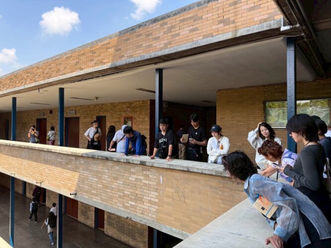 先生がかつて働いていた場所を、今度は学生や卒業生とともに訪れるという時間そのものが、建築を通した世代や国境を越えたつながりを感じさせる体験でした。