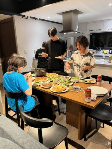 4日目の夜はみんなでスーパーに買い出しに行き、宿泊しているアパートで自炊パーティーを行いました。