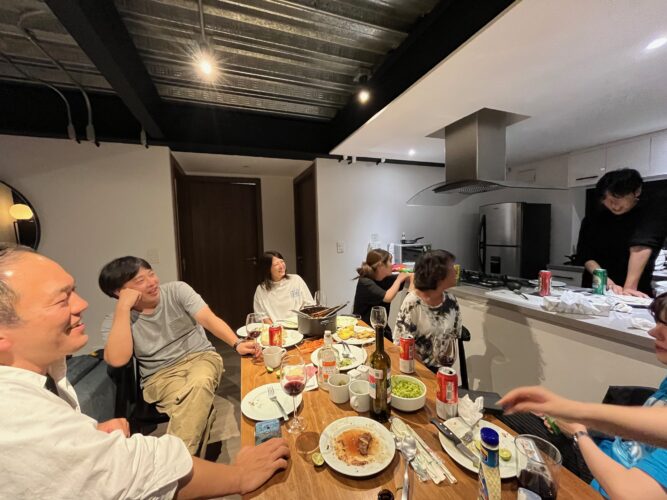 みんなで夕食。旅も終盤に差し掛かり、メンバーの絆も深まりました。